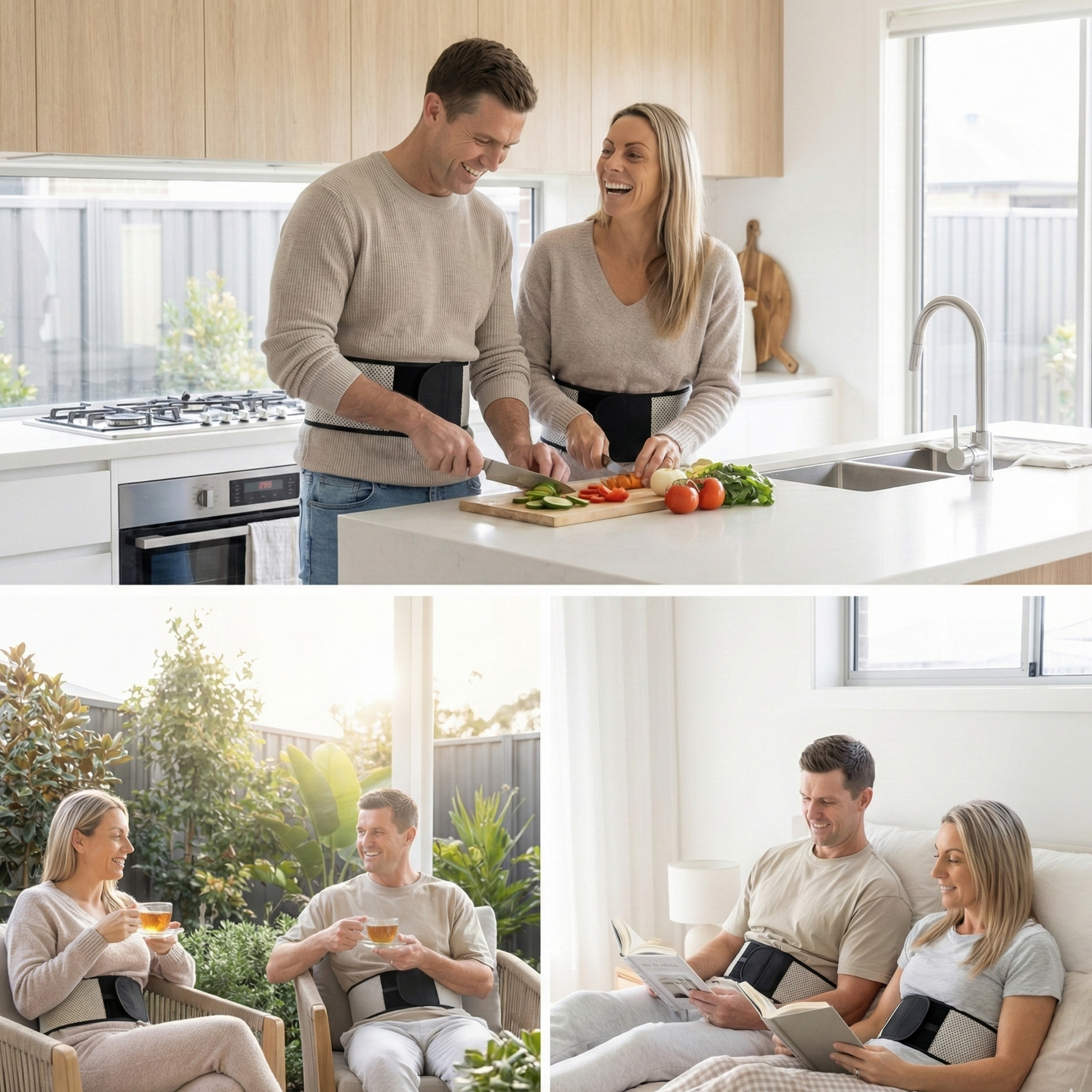 Tajemství spočívá v dvojím působení: Ortopedický tlak 360° narovnává páteř pasivně celý den, trénuje svaly bez námahy. Zároveň turmalínové kameny vyzařují teplo pronikající 8mm do hloubky tkání - uvolňují napjaté svaly a urychlují regeneraci. Je to jako mít fyzioterapeuta u sebe 24/7. Nosíte 4-6h denně pod oblečením, trvalý efekt po 8 týdnech.